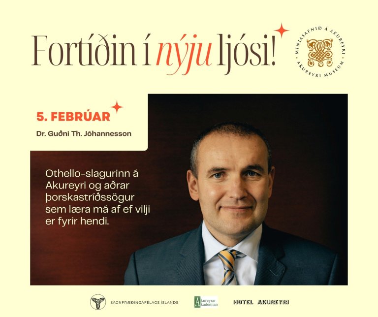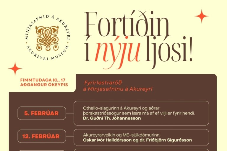 Fyrirlesturinn fer fram þriðjudaginn 26. apríl, í sal Félags eldri borgara á Akureyri, Bugðusíðu 1, og hefst kl. 16:00.